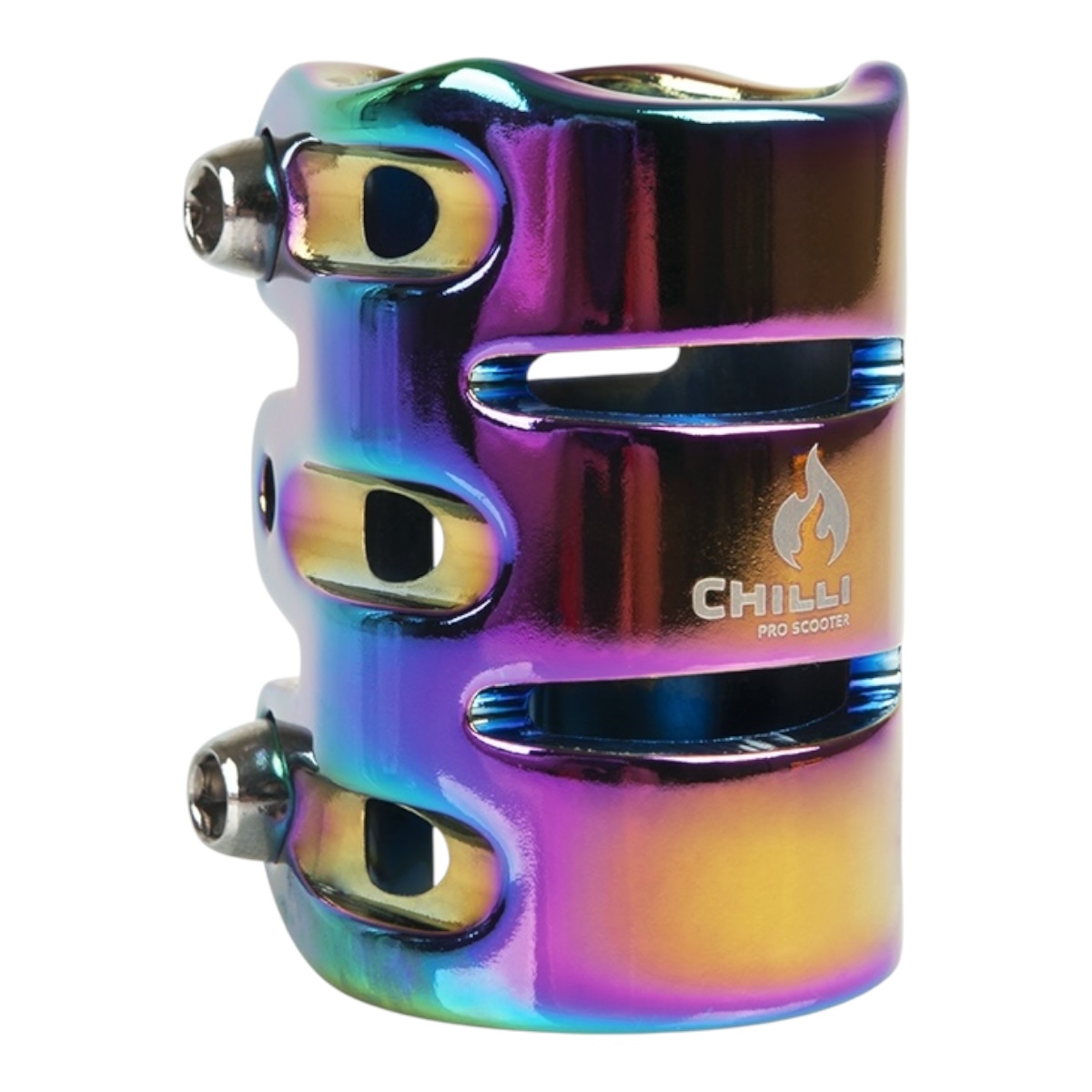 La Clamp Chilli Reaper HIC 3 Bolt Spider Neochrome no solo asegura tu scooter, ¡también roba miradas! Con su acabado neocromado brillante, aporta ese toque llamativo que todo rider busca, sin sacrificar rendimiento ni durabilidad.