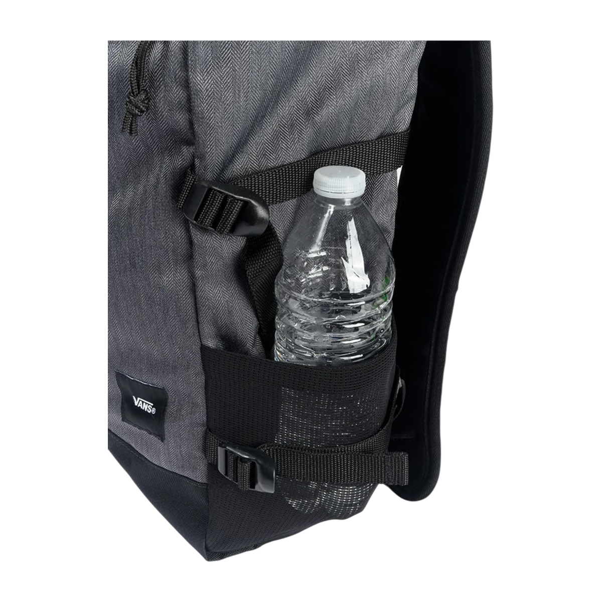 - Bolsillos laterales de malla para botellas de agua, adaptables a distintos tamaños.