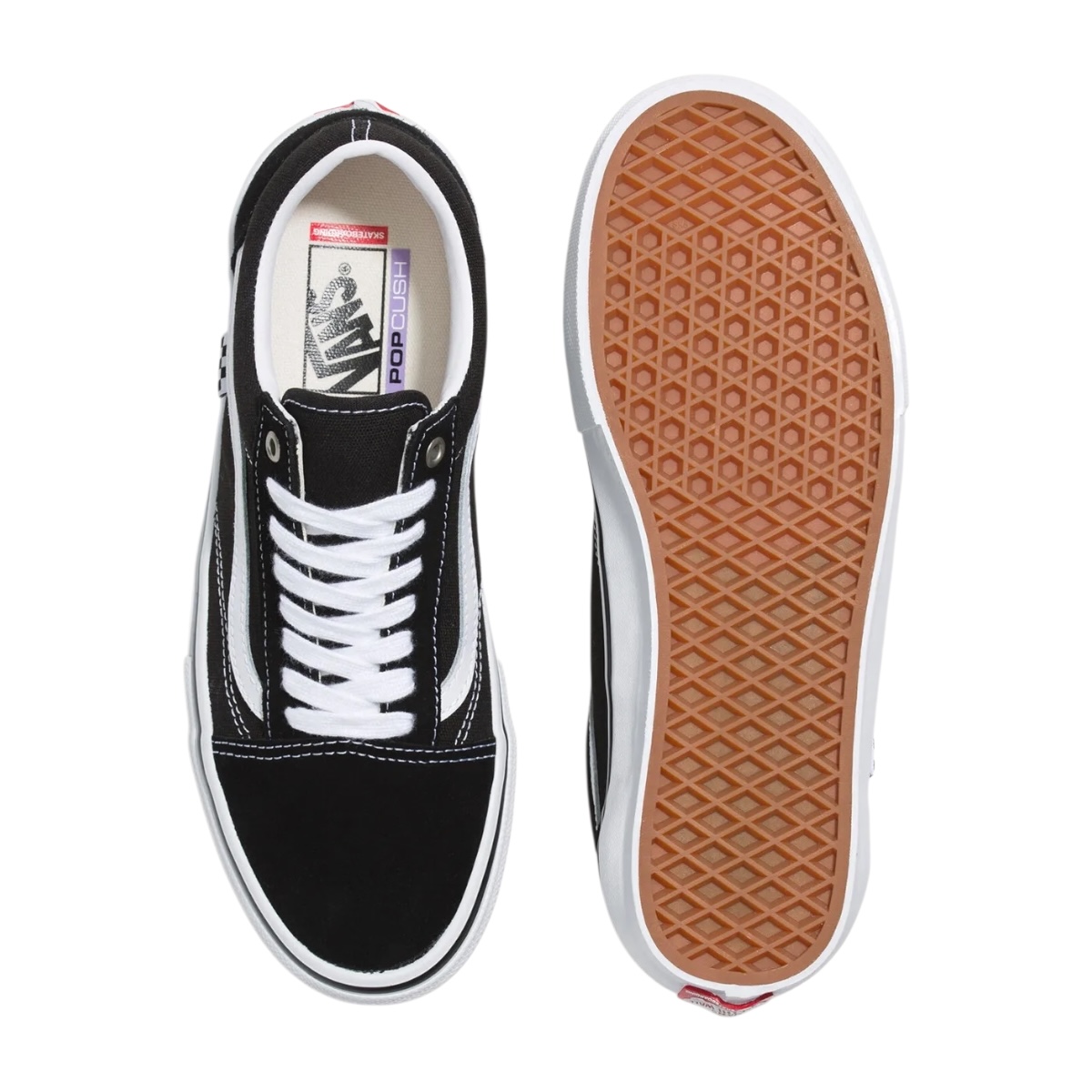 Para mayor comodidad, incluyen plantillas POPCUSH™, que absorben los impactos y reducen el cansancio, ideales para sesiones largas. Todo esto sin perder el estilo que todos reconocen: combinación en negro y blanco, sidestripe clásica y etiqueta checkerboard.